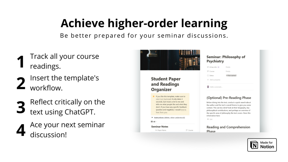 - A database to effectively manage your seminar readings and your notes on them in Notion.